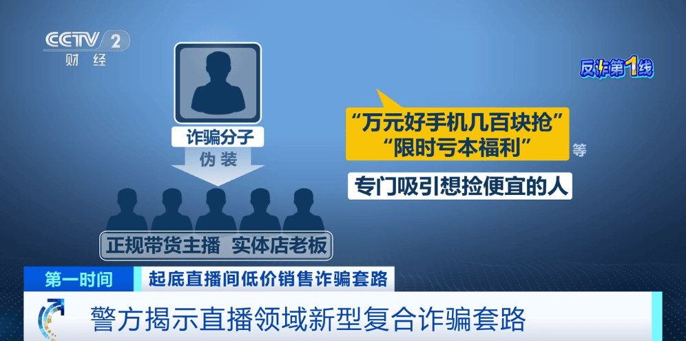 第一步,诈骗分子会提前注册大量实名账号,伪装成正规带货主播、实体店老板,在直播间大肆喊口号造势,张口就是“万元好手机几百块抢”“限时亏本福利”等,专门吸引想捡便宜的人。