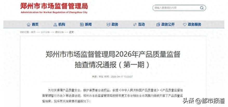 近日,郑州市市场监督管理局网站发布2026年产品质量监督抽查情况通报(第一期)。本次通报包含2025年第一批重点工业产品,2025年第二批重点工业产品,2025年第三批重点工业产品及2025年冬季成品油等27个项目消费及工业产品质量监督抽查。其中,检出1批次金项链不合格。